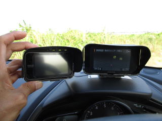 いままでの台座に、新レーダー探知機の乗せるとこんな感じ。