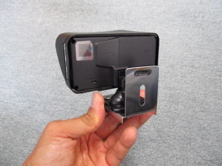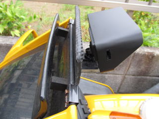 これでは、新レーダー探知機の能力を思う存分発揮できないので、何とかあの『窓』を前方に向けるように設置したい。