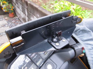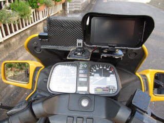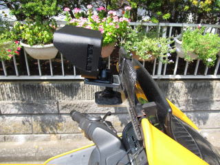 画面の視認性を得るために、かなり前傾姿勢な取り付け方になります。