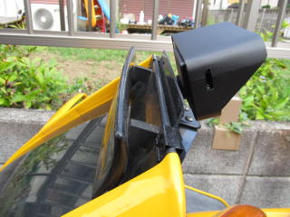 設置するのが普通でしょう。しかし、レーダー探知機をK100RSに設置するのに作った特製台座は、風よけを兼ねたデザインにしたんで