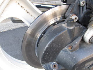 他方、交換したディスクはまだブレーキパットとの当たりが出てない。